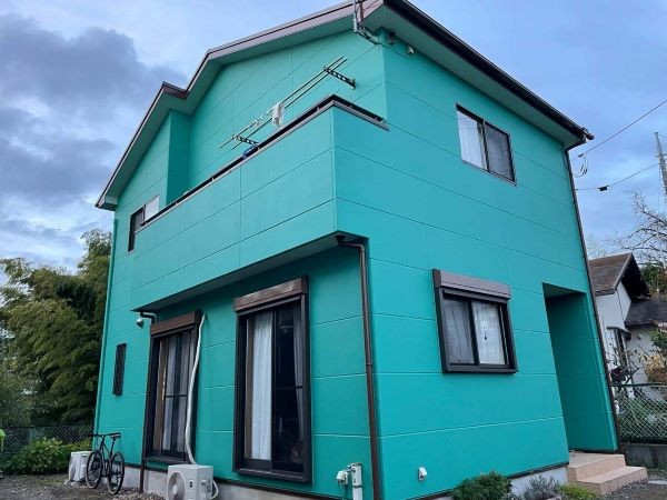 外壁に緑(グリーン)色を取り入れると、自然と調和しながら個性的でおしゃれな住宅に仕上がります。